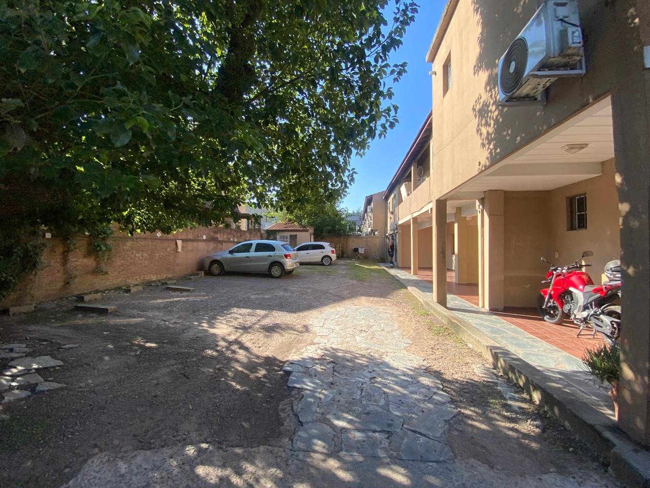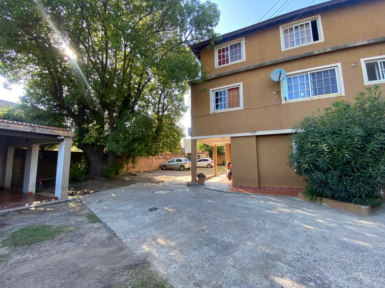 Departamento en Planta Baja, amplio con patio propio. Cuenta con cochera fija. El complejo tiene un Quincho con baño de uso común y hermoso parque.-