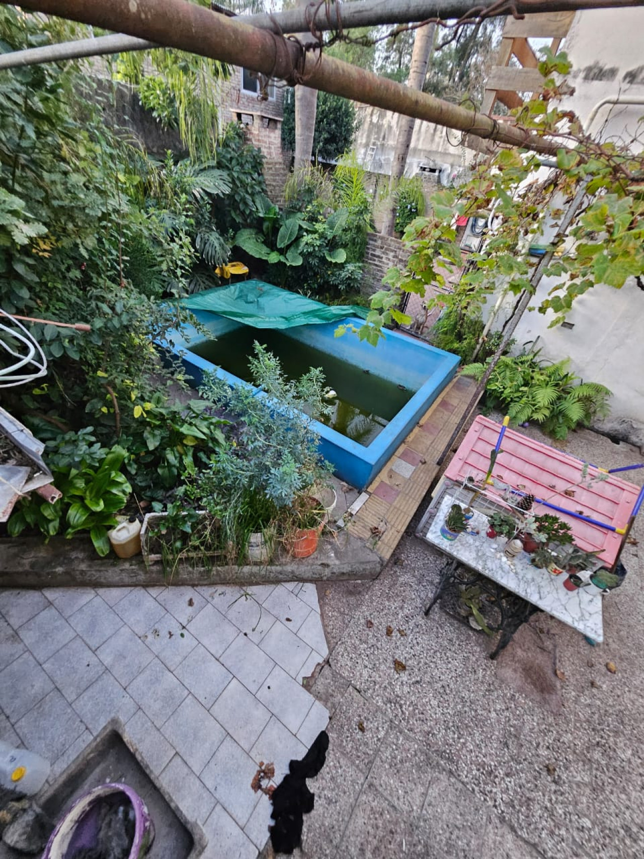 En la parte trasera, se encuentra un patio amplio con pileta, ideal para disfrutar del aire libre. Además, dispone de baños de servicios.